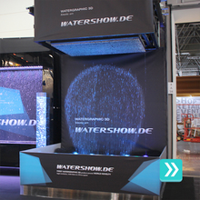 Digital waterscreen, schreibende Wasserwand für den Messe- und Eventbereich.